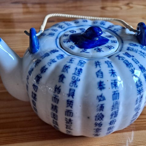 Kuvien mukainen hienossa kunnossa oleva pieni teekannu, vetoisuus noin puolilitraa. Värikäs kukkakuvio toisella sivulla, kultauksin rajatut kukat. toinen sivu ilman koristeita, Ei ole pesty astianpesukoneessa. Ollut vain koristeena hyllyssä. korkeus kannen kanssa noin 9 cm ja ilman kaatonokkaa halkaisija leveimmillään noin 13 cm. hinta noudettuna. voin lähettää + 12€