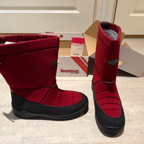 Mustat käytetyt puhtaat Nokian Lumikki Kuomat. Vuorit ehjät kantapäistäkin. Varren tereessä kulumista ja rispaantumista ,katso kuvat.