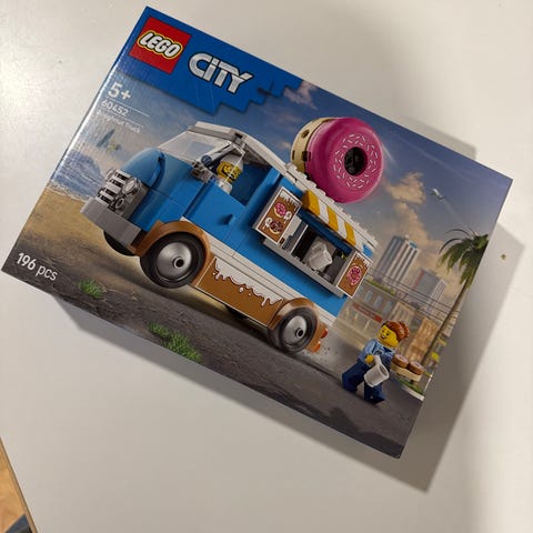 LEGO City Donitsiauto leikkisetti sisältää 196 osaa. Sopii yli 5-vuotiaille lapsille. Setissä on sininen donitsiauto ja hahmoja. Materiaali muovia.