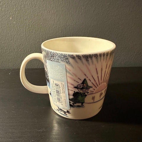Muumimuki Kevättalvi (sesonkituote 2017), uusi ja käyttämätön, tarra löytyy.