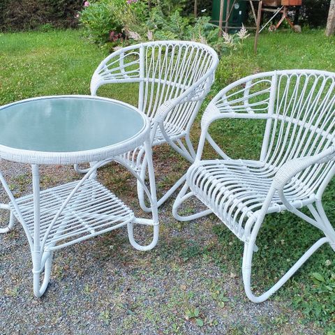Myydään erittäin hyväkuntoiset Parolan Rottingin Lumikenkätuolit 2 kpl ja Lumikenkä pöytä 50cm.