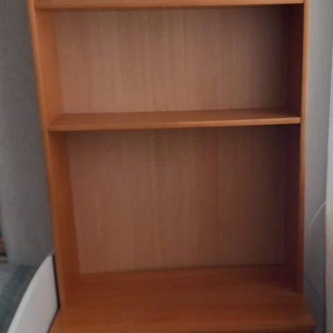 Ruuveilla seinälle kiinnittyvät hylly sekä pieni kaksiosainen naulakko, jotka ovat käyttökelpoisia. Hylly irtoaa 5 eurolla, naulakko 2 eurolla.