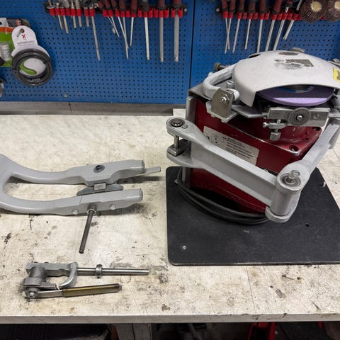 Jääkiekkoseuralta tarpeettomaksi jäänyt Prosharp Home -teroituskone.