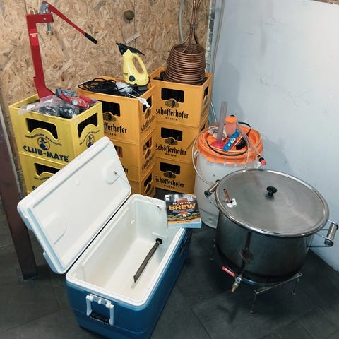 3x 24kpl 50cl patenttikorkki pulloja, 2x 24kpl 33cl pulloja koreineen. 2 käymisastiaa hanallisia molemmat toisesta puuttuu pieni pala kannen kiinnityksestä. Sekä tarvikkeita oluen/siiderin valmistusta varten ja nippu korkkeja sekä käsi korkituskone. Uutena koko setti n. 250e.