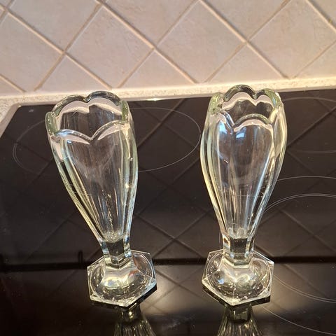 Myydään x 3 maljakkoa, Karhulan lasi, hyväkuntoisia, kork n 18cm, 15€/kpl, yksittäin tai ryhmä/ kaikki yhdessä , jolloin hinnan alennusta.