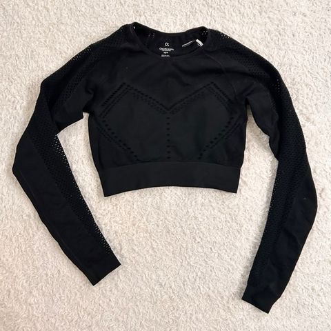 Calvin Klein Crop-paita, koko xs,musta väri. Valmistettu urheiluun sopivaksi, materiaali ei tiedossa. Sopii salitreenikäyttöön naisille.