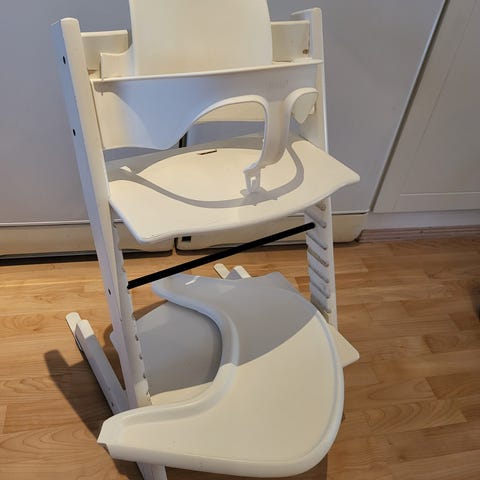 Hyväkuntoinen kahdella lapsella käytöstä poistunut Stokke Tripp Trapp tuoli.