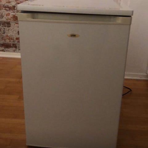 Toimiva 84cm korkea jääkaappi, iästä en tiedä oli hetken varalla nyt toisen tieltä pois, nyt likainen kuvissa mutta teen pesun kohta