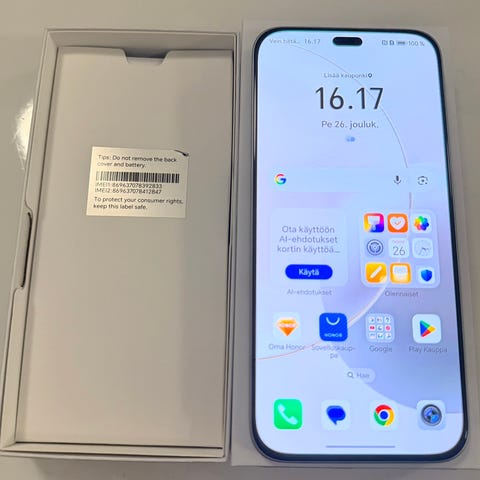 Ihan käyttämätön puhelin. Pakkaus avattu ja näytölle myös suojakalvo asennettu liikkeessä valmiiksi. Väri kulta. Takuukuitti mukana.
