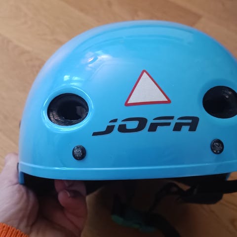 Jofa luistelukypärä S. 48,5-52,5cm päähän. Käyttämätön, laput ehdittiin leikata ja todeta pieneksi.