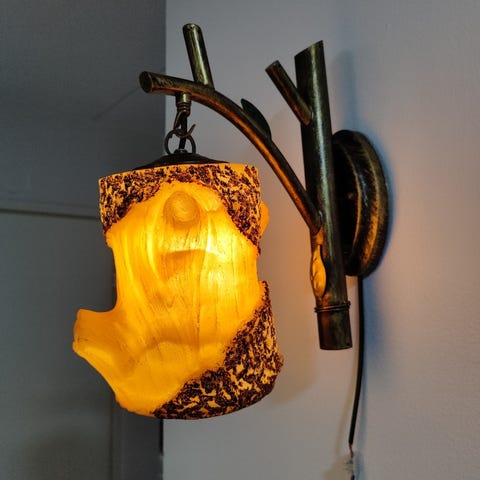 Valaisin toimii sähköllä ja siinä on pitkä virtajohto sekä välikytkin, joten sitä on helppo käyttää ja sijoittaa haluttuun paikkaan. Jokainen kappale on yksilöllinen – täysin vastaavaa ei tule vastaan kaupassa.