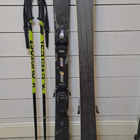 Suksissa pinnalla naarmuja ja hieman pohjassa, mutta näitä tuppaa käytössä aina tulla.