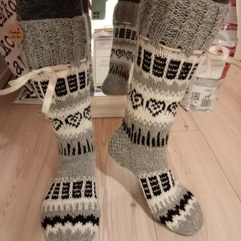 Uudet käyttämättömät villasukat. Käsintehty. Koko 37-39. Jalkaterä n.23cm. Varsi n. 26cm.