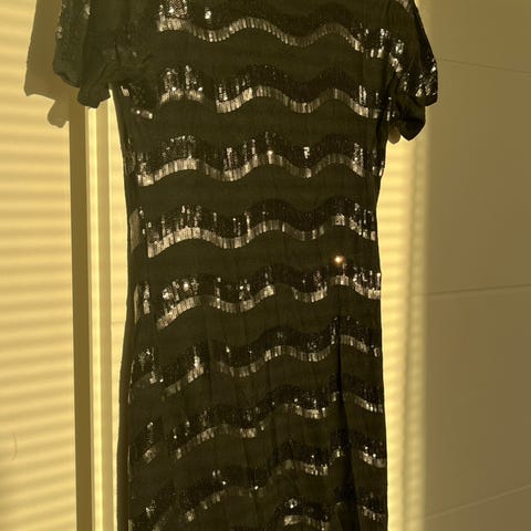 Uudenvuoden juhliin ihana Philosophy Blues Original musta paljettipusero koossa m. Materiaali joustaa, yläosa kietaisumallinen, rinnan alla sauma, josta hieman levenevä helmakpl. Alla trikoovuori. Kainalo- kainalo takaa venyttämättä 104 cm, olka-helma 60 cm.
