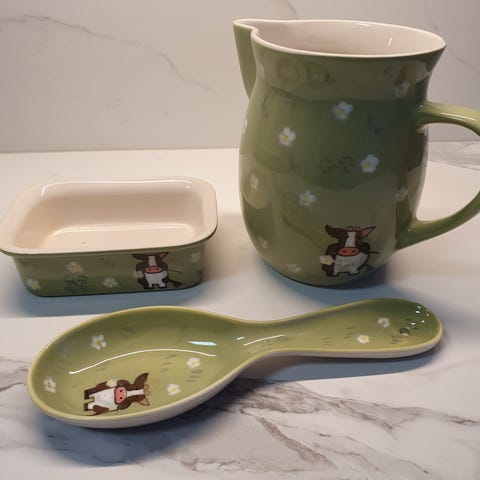 Myydään seinälle asetettava vaasi sekä käytännöllinen kauhanlepuuttaja. Kaunis ja persoonallinen kokonaisuus keittiöön tai sisustukseen.