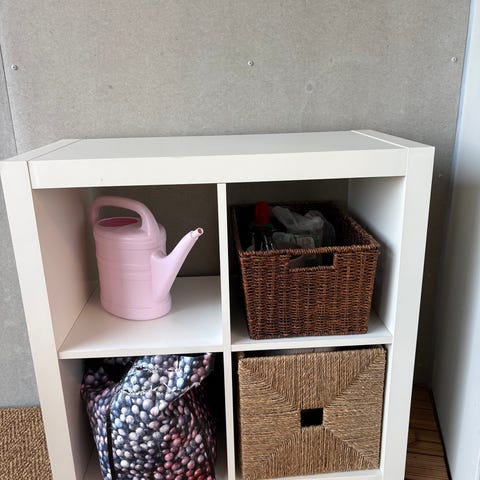 Ruskea Ikea Kallax 5x5 hylly nopealle noutajalle.