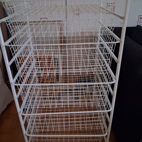 Myydään 2 kpl kaapistoon sijoitettavia lankakoreja. Mukana kiskot ja kiinnitysruuvit. Merkki Norscan. Väri tummanharmaa.