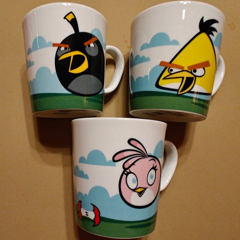 Arabia Angry Birds muki, posliinia, vaaleanpunainen kuvitus. 2009-2015