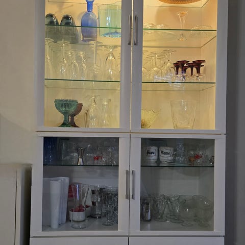 Myydään lasivitriini toisen tieltä pois. Pientä kulumaa on jotka laitettu kuviin. Yleisilme siisti.