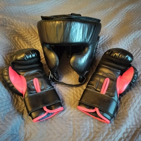 Vähällä käytöllä olleet varusteet. Hanskat ja suojat yhteensä 35€