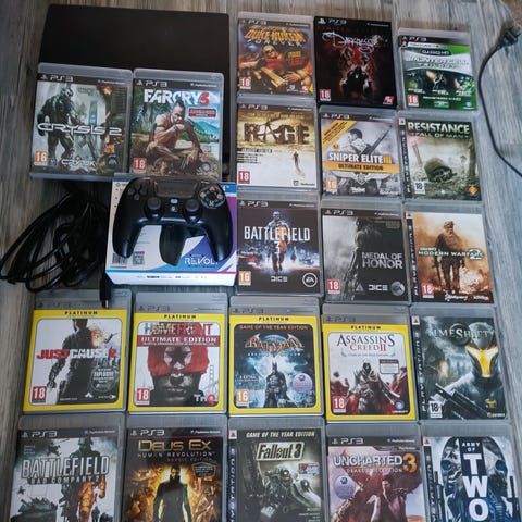 PS3 Fat + 14 peliä (autopelejä paljon)