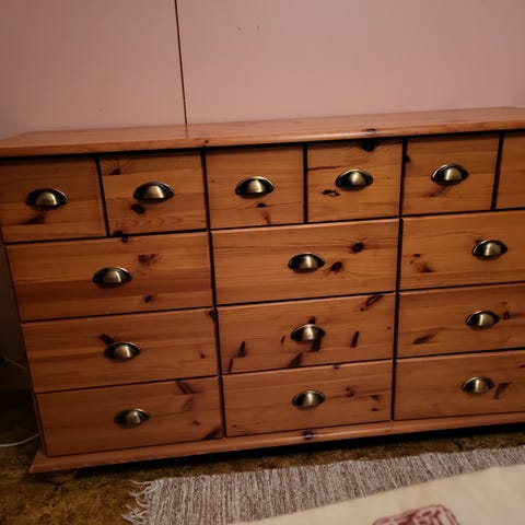 Pentikin Ludvig lipasto. Kevyttä mango tms. puuta. Uustuotantoa, malli oli myynnissä vuosia sitten. Kaksi vetolaatikkoa. Pohja mustaksi maalattu, pinta hopeanharmaa. Takana pari piuhanpidikettä ja sivussa yksi naula. Siisti, pientä käyttökulumaa jalkaosissa.