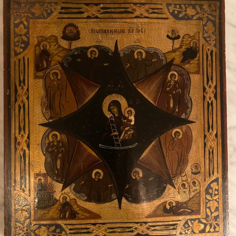 Uskonnollinen ikoni -tyyppinen maalaus puupohjalle
