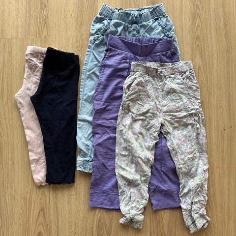 - Kuva 4: Tummansiniset name it gaprilegginsit ja shortsit. Valkoiset Lindexin shortsit.