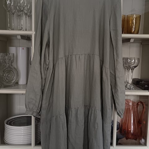 Nanso Sarastus vaaleansininen midimittainen pellavamekko XXL. Kai-kai n 67 cm ja olka-helma n 114 cm. Hihansuissa säätövara kahdella napilla. Kunto uudenveroinen. Taskut sivusaumoissa.