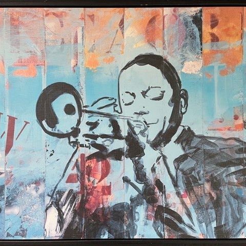Louis Amstrong Saksofoni musta-valkoinen musiikkitaulu 42x32