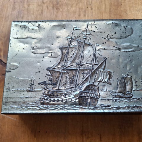 Vanhat, Art Deco tyyliset kalvosinnapit ja solmioneula. Kuvissa valtameriristeilijä.