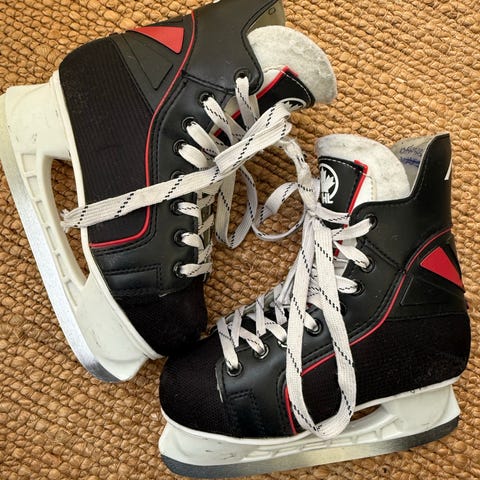 Lasten jääkiekkoluistimet, Bauerin koko 2 / EU koko 35. Luistimet on suunniteltu jääkiekkoon ja tarjoavat sopivan istuvuuden lapsen jalkaan.