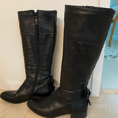 Varsissa ylhäällä nahkasuikale koristeita ja nahkaiset kiristysnyörit, joilla voi vartta kiristää.