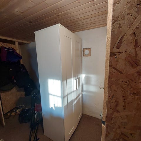 Siisti ja hyväkuntoinen kaappi säädettävällä jaloilla.