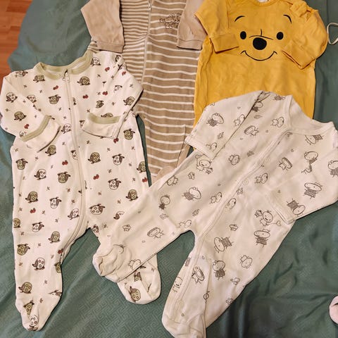 5 kpl pojan yö-/päivähaalareita. Yhdessä on huppu. Koko 50 cm.