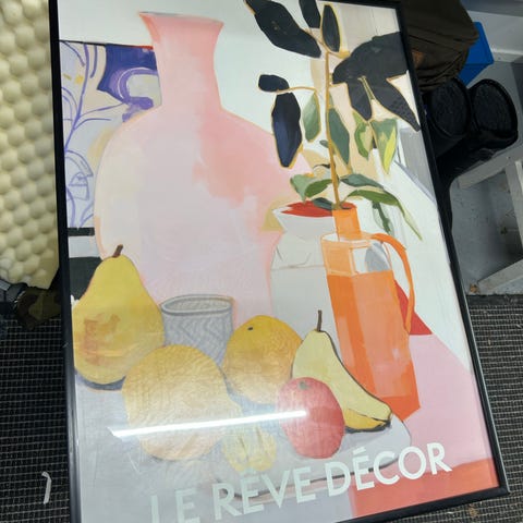 Taulukehys koko 40x50. Lasia ja kehys muovia.