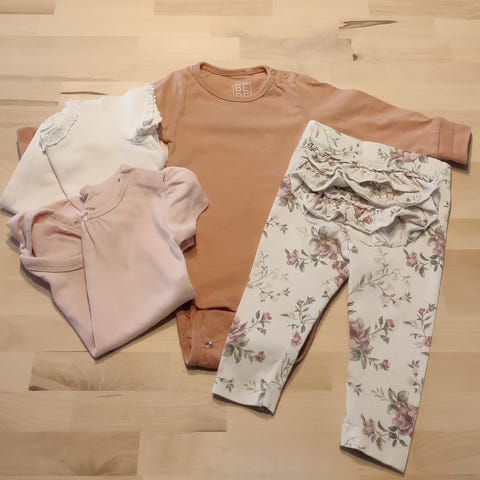 Hyväkuntoiset vaatteet seuraavalle tytölle, 3 kpl body, 1 pari housut, 1 pusero, 1 pyjama.