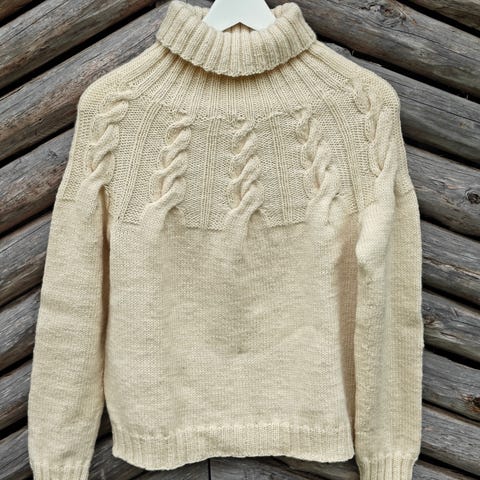 Uusi villapusero. Koko M. Malli VillaUnelmia Aurora. Käsin neulottu drops lima langalla.
