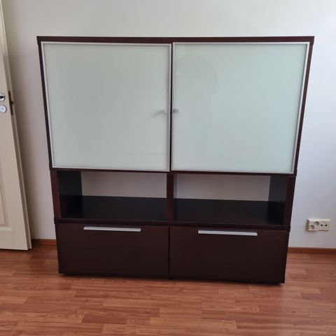 Koivun väriset Ikeasta ostetut kaapit, 2 kpl, huurrelasiovilla. Käytön jälkiä, mutta edelleen ihan siistit. Yhteensä 100e. Vain nouto!