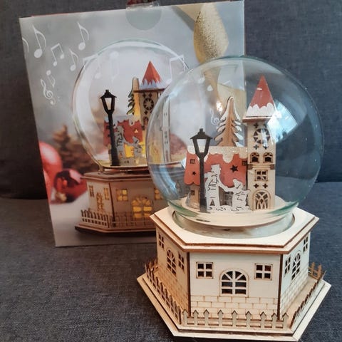 Jouluinen soittorasia ja 2 kpl puustatehtyä maisemaa.