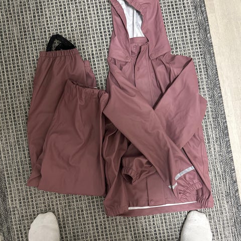 Tyttöjen pinkit ulkohousut. Housut ovat siistit ja ehjät, mutta polvien kohdalla on hieman käytön jälkiä (näkyy kuvissa). Mukavat ja käytännölliset ulkoleikkeihin, heijastinnauhat lahkeissa lisäävät näkyvyyttä.