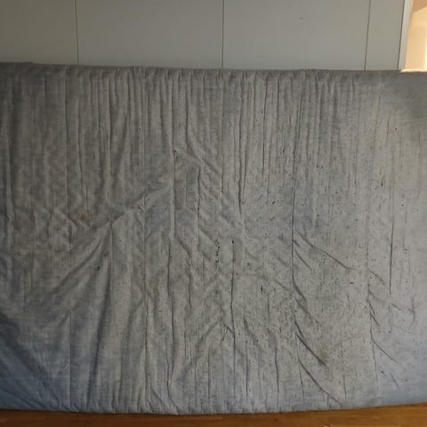 Patjan päällä on käytetty suojusta. Patja on muuten hyvässä kunnossa, mutta siinä on pieni tahra.