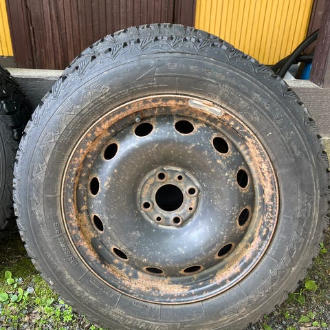 Nokian Hakkapeliitta renkaat vanteilla, koko 195/65 R15. Renkaat soveltuvat henkilöautoihin ja sisältävät alumiinivanteet. Renkaat on suunniteltu erityisesti talvikäyttöön, ja niissä on nastat parantamassa pitoa liukkailla pinnoilla. Yhdessä vanteessa naarmuja mutta ei teknisesti haittaa käyttöä. Sopii mm. Corolla 2003.