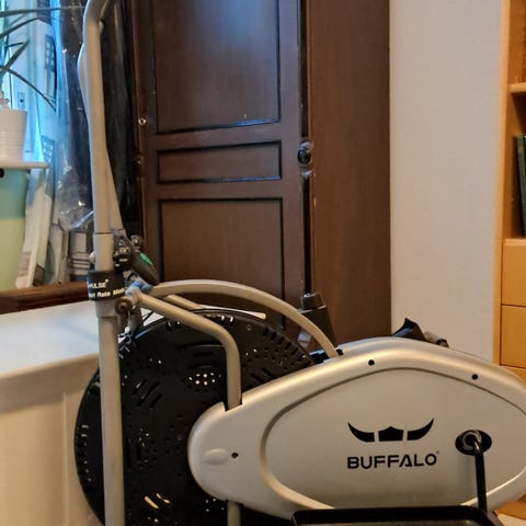Harjoituspyörä mustan ja hopean väreissä. Kompaktiin tilaan menevä sisäpyörä, joka soveltuu kotiharjoitteluun. Toimiva peli, vaikka vanha onkin.