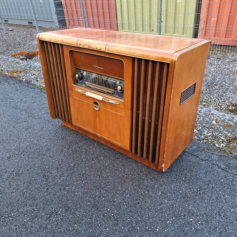 Hakusanat: radio, grundig, käytetty, klassikko, elektroninen, äänentoisto, Paketoitava, Valmistaja, vintage huonekalut, puu, rf 450, keräily, vintage, retro, laite, musiikki, saksalainen