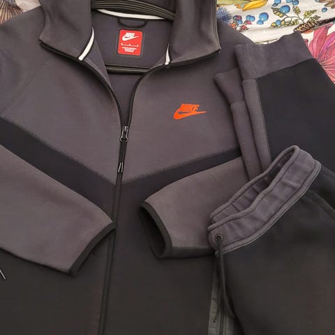 Nike tech fleece verryttelyasu. hyvässä kunnossa paitsi että hihassa on pieniä repeytymiä. Soveltuu vapaa-ajan ja urheilukäyttöön.