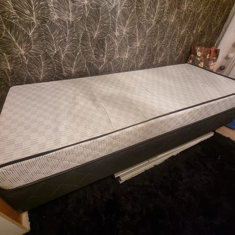Myydään levitettävä rautasängyn runko. Levitettäessä hiukan jäykkä, toiminut meillä yhden 80cm patjan kanssa sänkynä/sohvana.