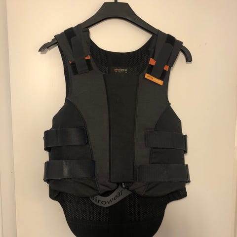 • Mukava päällä, tarrat vyötäröllä ja olkapäissä, helppo säätää. Vetoketju edessä