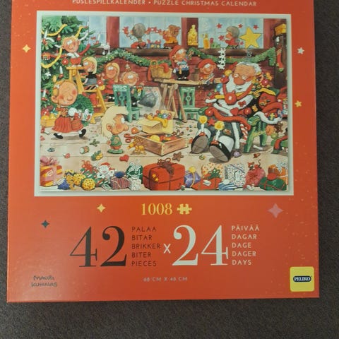 Black Sea palapelijoulukalenteri 24 Days of Christmas. 24 minipalapeliä joissa kussakin 54 palaa. HUOM! Älä katso kahden ensimmäisen kuvan jälkeisiä kuvia ellet halua nähdä millaisia kuvia palapeleistä tulee. Uutena ostettu ja jokainen kertaalleen kasattu. Kaikki palat tallessa ja omiin laatikoihinsa takaisin purettuina. Siistissä kunnossa, muutamissa paloissa oli kyllä sanomista heti uutena.