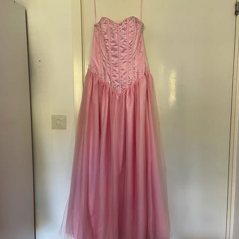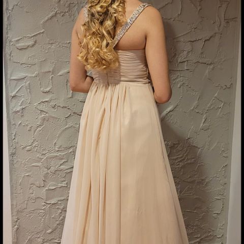 Pari kertaa käytetty vanhojentanssimekko. Joitakin puutteita on, jotka näkyy kuvissa. Likatahroja ei ole koitettu pestä. Yleisilmeeltään siisti! Koko on noin S-M.